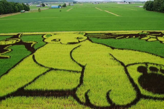 We’ve all heard of urban art, but this is rural art. Art that takes place in farm fields of rice paddy’s in Japan. The Japanese Rice Paddy Art Festival is a fairly low-key art festival that has submissions from all over Japan to showcase a large crop of rice paddy designs. Farmers just design these for themselves and send the pictures in, where there is a small following for this type of art in Japan. Designed by carefully organizing colours of rice plants to create a large scale picture is no easy task, but the Japanese have been doing things for decades that have fascinated the Western Hemisphere.